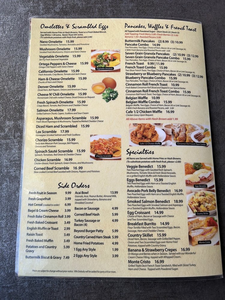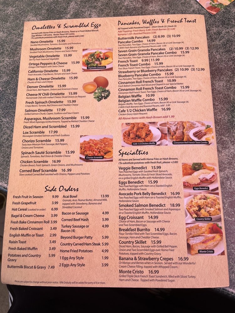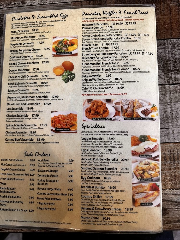 Nano Cafe’s menu showcases a vibrant selection of breakfast staples, from the hearty Chicken Fried Steak to the comforting Corned Beef Hash. Breakfast lovers will delight in options like the Veggie Benedict and Avocado Pork Belly Benedict, featuring poached eggs on a toasted English muffin, elevated with flavorful sauces.